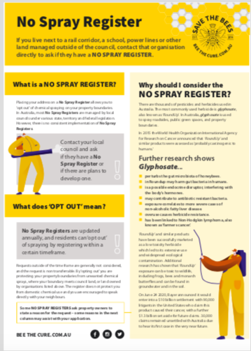 Check with your school to see if any Glyphosate is sprayed on school grounds and start a conversation about the importance of human and bee wellbeing